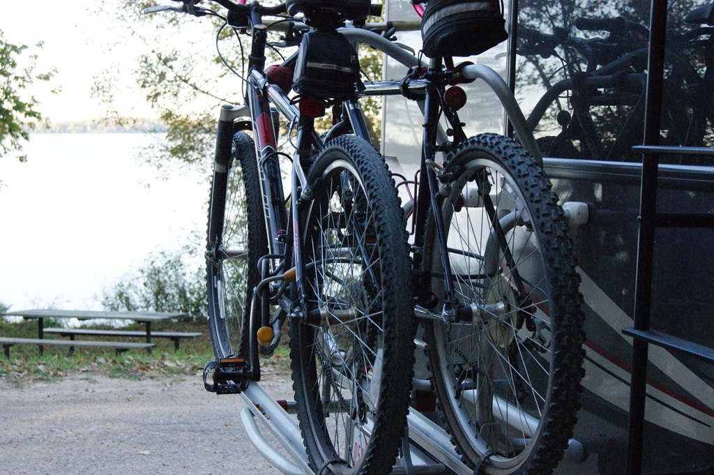 OK. So now let's go through some of the situations RVers are likely to encounter, and I'll go over how I would lock up my bike in those situations. The first of those, is on your own bike rack.