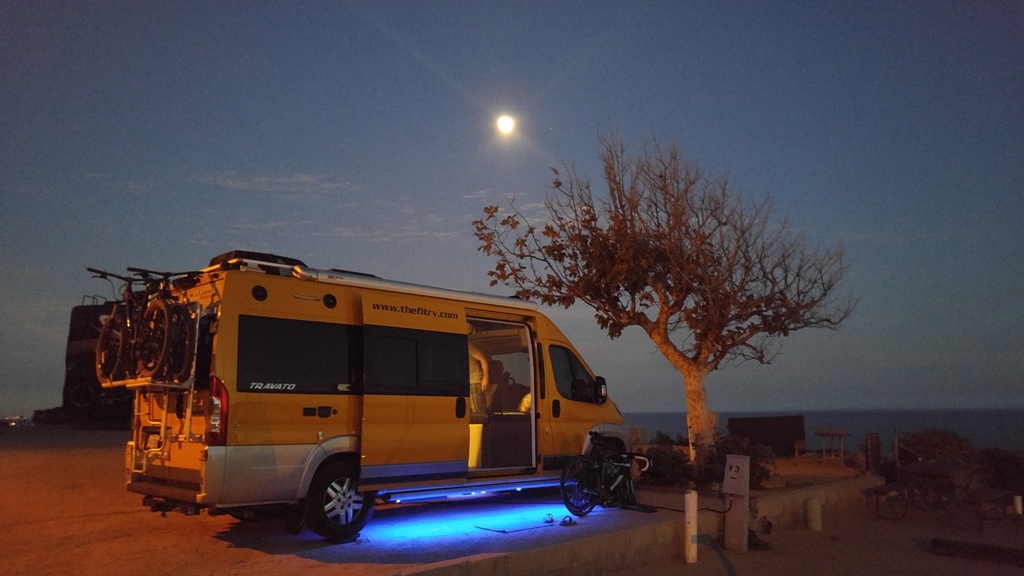 Now -- VERY IMPORTANT. If you have rear doors on your RV like our Winnebago Travato here, DO NOT secure your bike or chain to both doors. This will make it impossible to open the doors! And that could be a real hazard in an emergency.