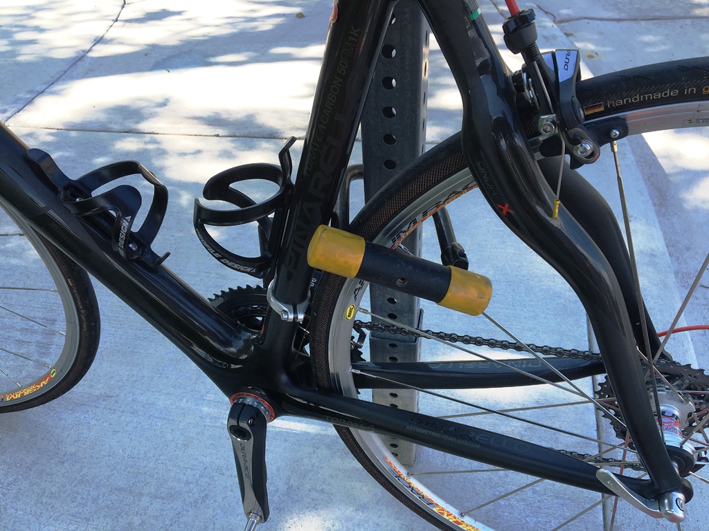 The next thing to think about is matching the level of protection to the bike. It should be obvious, but I'd apply different locking strategies to my very expensive time trial bike than I would apply to a beater bike from the 1980s. The same should apply to you. If you're OK with your bikes living outside all the time, that calls for one level of protection. But if you insist on indoor climate controlled storage for your bikes - well that requires something else. (Yes. That's me.)