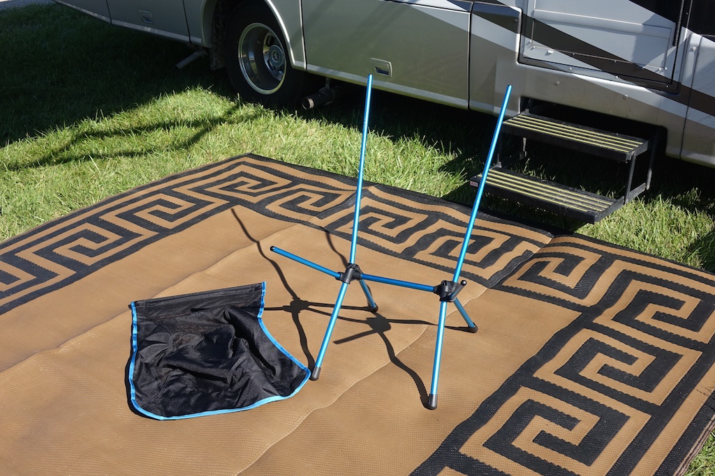 While I love our Zip Dees, as they are very comfortable and fold very flat, they are rather heavy. I looked around at the standard issue folding camp chairs and found them often cumbersome to store and, after a short time, not particularly comfortable to sit in.