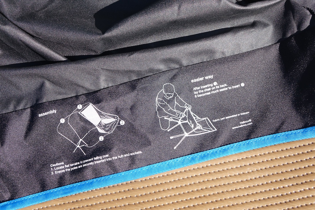 It takes a little figuring out, but once you understand how to assemble/disassemble it (instructions are printed on the chair itself), it's easy. Another pleasant surprise is that, without any advanced math skills you can fold and roll it up so it actually fits in it's carrying case.
