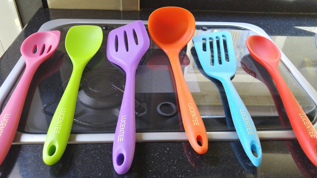 Just look how colorful and fun they are! But that's not all, silicone kitchen utensils serve a bigger purpose in our RV kitchen. THEY DON'T RATTLE. James goes a bit nutty whenever anything rattles as we're driving along. These silicone utensils keep things nice and peaceful for him. Which means peace for me, too. And there's more to love about silicone utensils. They don't harbor germs like wooden utensils can, and they're good to really high heat.