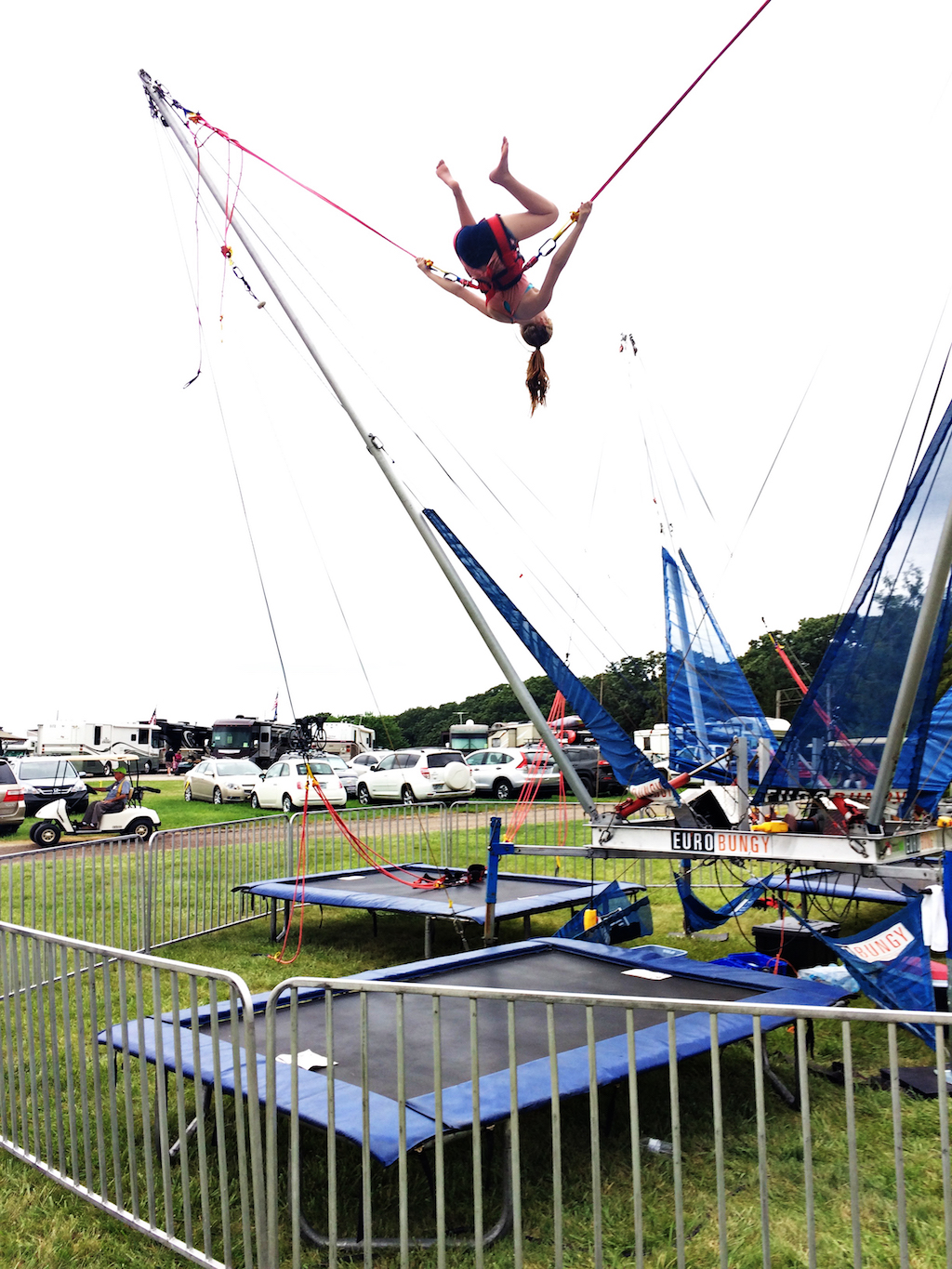 Just the thought of heading back to GNR had Abby flipping out. The bungee trampoline is just one of the many rides on the rally grounds that keep the young at heart entertained.