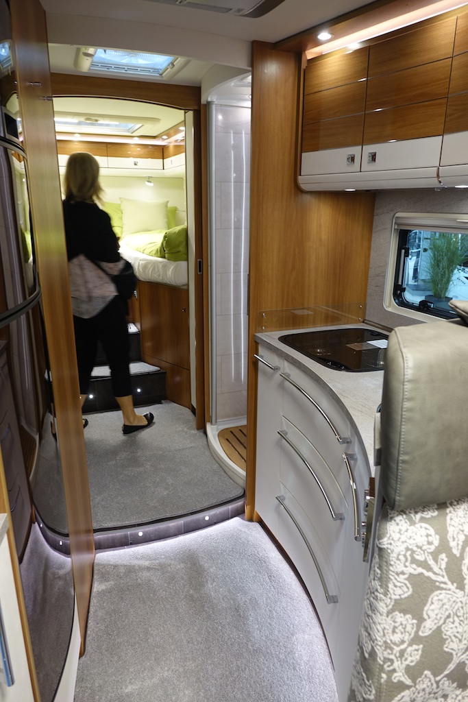 Perhaps the most consistently noticeable difference from our North American products is that virtually all the towables and motorhomes we saw is their interior design. When people say, "that's such a Euro look" -- it aptly describes the sleek, clean, tending toward minimalistic, interiors. You can see this Euro-design inspiration deeply embedded in Winnebago's smaller products like the Travato, Trend and View/Navion, but beyond that, there's a heaviness and general ornateness to American styling in comparision. The philosophical differences are in sharp contrast that "less is more" on the European side of the Atlantic and that "nothing succeeds like excess" view on the North American side.
