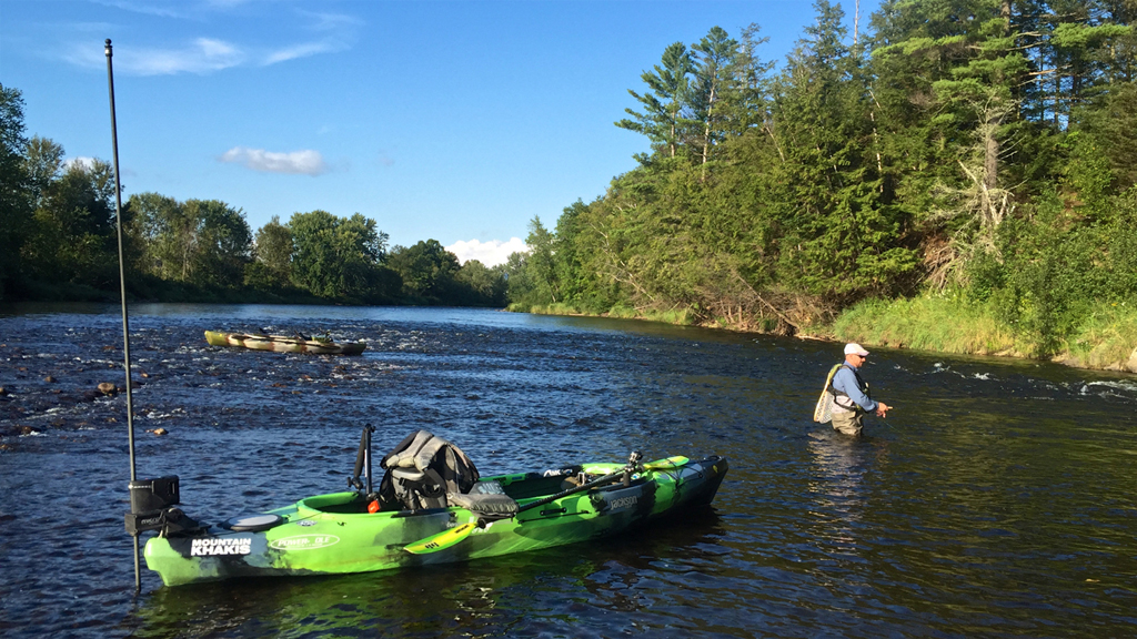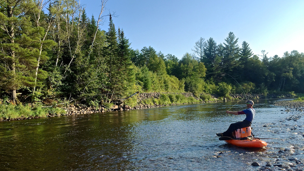 I was also there to commandeer Q's father, Whit, for a kid-free 'man trip' and a little fly fishing mission to the Upper Connecticut River and some surrounding whitewater streams we know well. The Upper Connecticut is dam fed, and one of the few rivers that can remain cold enough for trout fishing in hot late summer weather. My friend Brian joined us there as well, and an armada of the two of us in Jackson Kayak Kilroys, and Whit lounging on an Orion-throned SUPerCharger headed downstream.