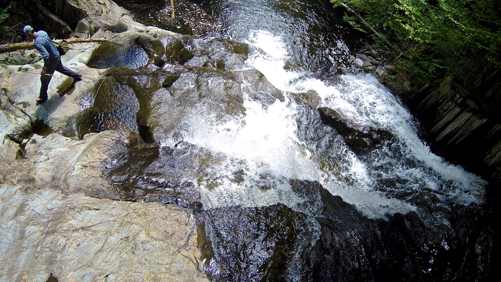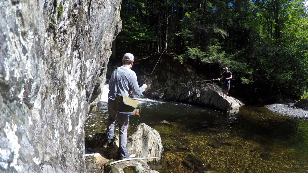Before our 'man trip' was over, we felt it was appropriate to check out some streams that usually find us paddling their whitewater rapids, not casting fly lines. It's always cool to see whitewater streams with low water so you can see just what geology is there to form the rapids, or scout for any hazards that may be hidden during high water. Seeing fish while paddling whitewater is one of the reasons I began fly fishing in the first place. (For one of my whitewater GoPro videos of this creek at high levels, click here: Kayaking the North Branch Winooski)