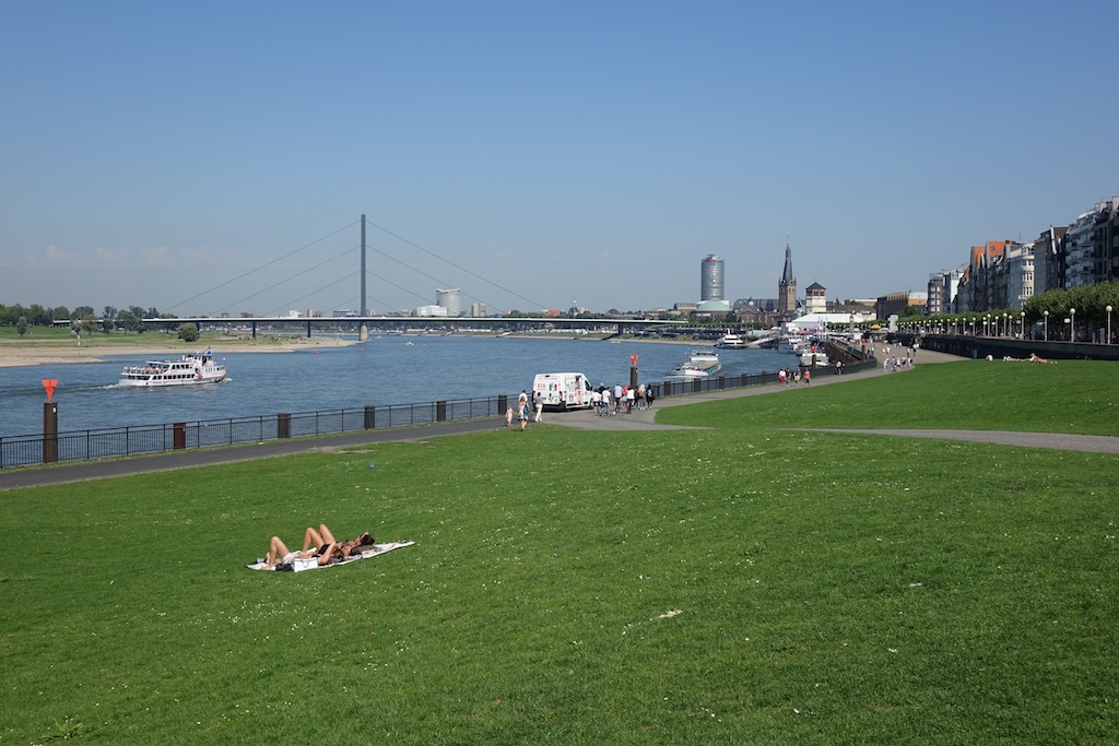 Dusseldorf is a very pleasant city on the Rhine. Below is a warm Sunday morning.