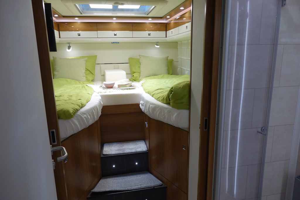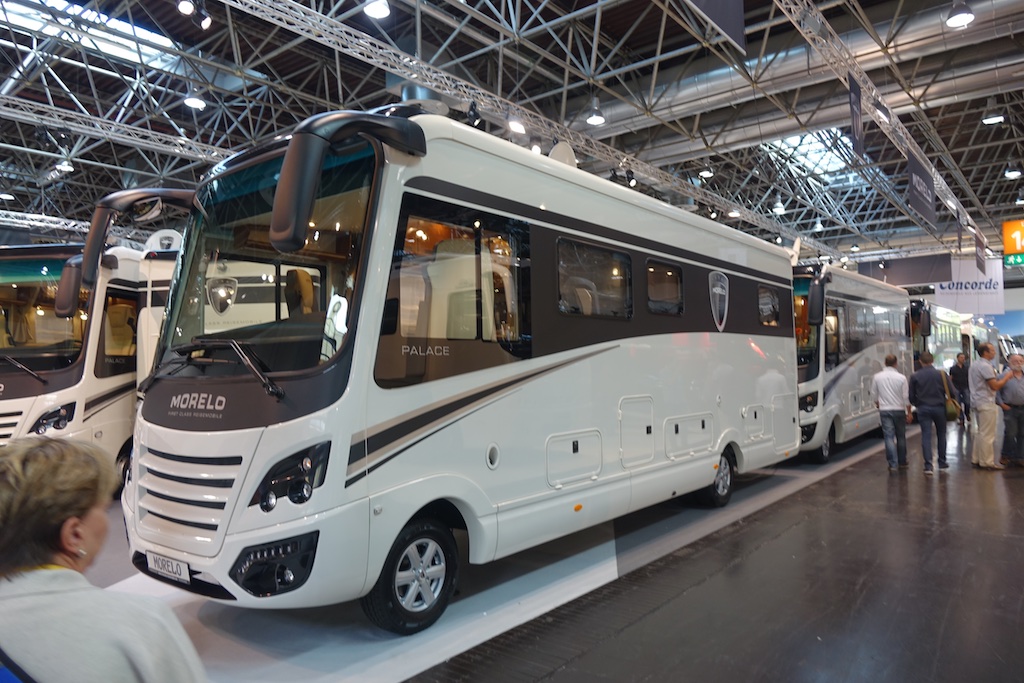Big swirls! With very, very few exceptions, European RVs are painted white with simple paint highlights. This Morelo Class A is an expensive one and indicative of the general design scheme found throughout the European coaches.