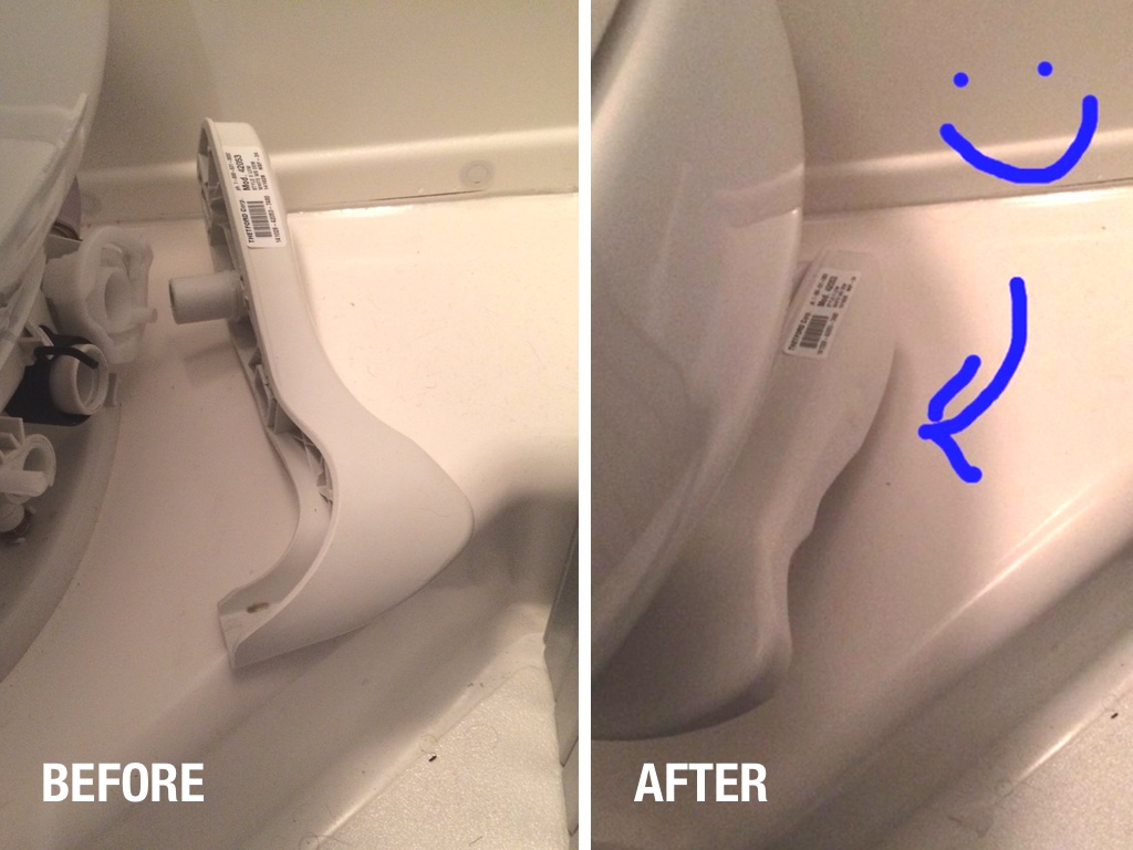 I learned to tell the difference between a waste ball valve drive arm and water valve drive arm. I also learned that when RV accessory manufacturer websites fail, the Travato owners' Facebook group comes through. I posted my problem at 10:30, by 10:45, the group posted video solutions and advice (and also many, many bathroom puns). I fixed it using a combination of science and brute force. I posted a photo of the fixed pedal. The group wrote that they were flushed with pride for me.