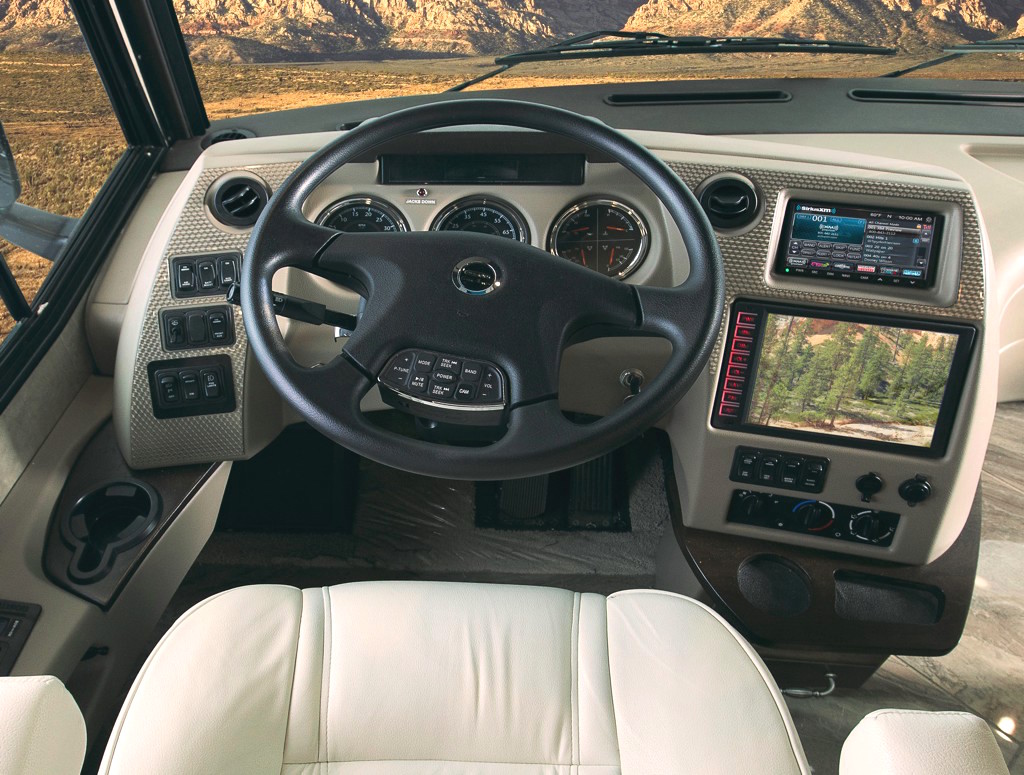 Steering wheel and dash of Winnebago Journey/Meridian.