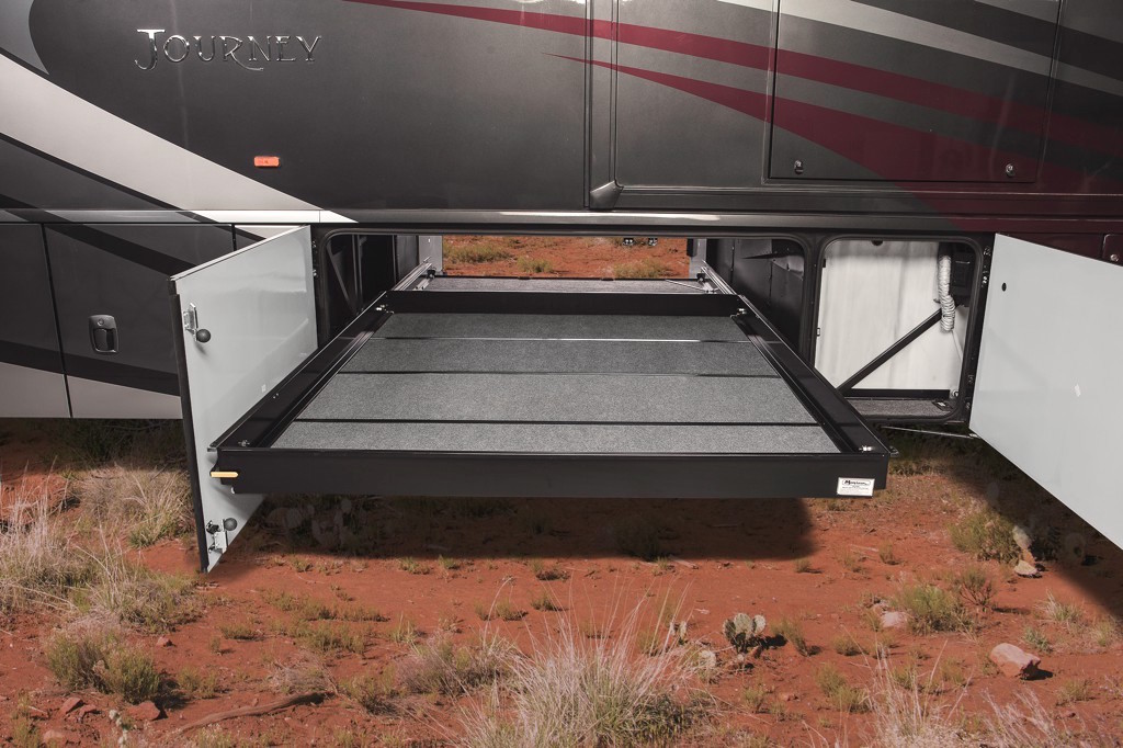 Exterior storage tray on the Winnebago Journey.