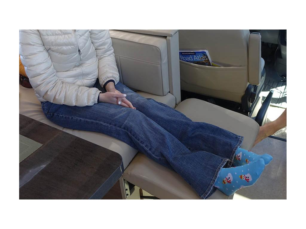 A furniture option we chose was the “booster seats” for the driver and passenger seats. For extended stays, we rotate the seats in toward the coach and with the boosters, find them to be exceptionally comfortable for reading, watching TV, or conversing.