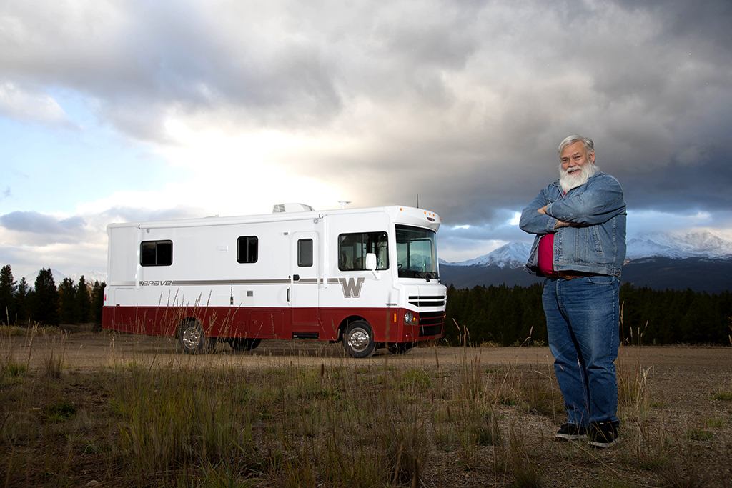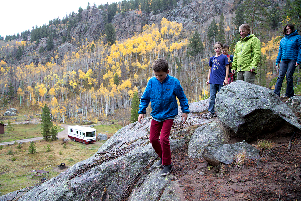 And finally, meet Larry, an independent contract driver for Winnebago. Larry grew up in Southern California and has spent years and tens of thousands of miles delivering motorhomes and large heavy construction vehicles across the country. He's one of Winnebago's "go-to" drivers for special assignments (like driving a Winnebago into mid-town Manhattan for a Fox Business News report). Watching him maneuver the Brave into some really tight spaces was a thing of awe and beauty. Larry's degree was in photojournalism and his strong sense of photography intuitively helped him position the Brave for the best photo spots. Though the air was a little thin (much of the photo shoot was at or near 10,000 feet in elevation), Larry was thrilled to journey through the golden aspens and picked up a few ideas for taking his Boy Scout troop rock climbing in Joshua Tree National Park in January.
