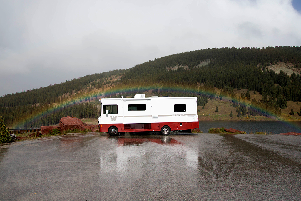 In mid-October the California RV show, one of the largest in the country, draws tens of thousands of visitors. It's a perfect place for Winnebago to showcase many of it's products. This year the company wanted to send one of the brand new, classic designed Braves to the show. And, in looking at the map, it seemed like a perfect idea to route the Brave through Colorado, and send a top industry photographer to capture the fun and spirit of this smile inducing model against the backdrop of the highest peaks in the Rockies.