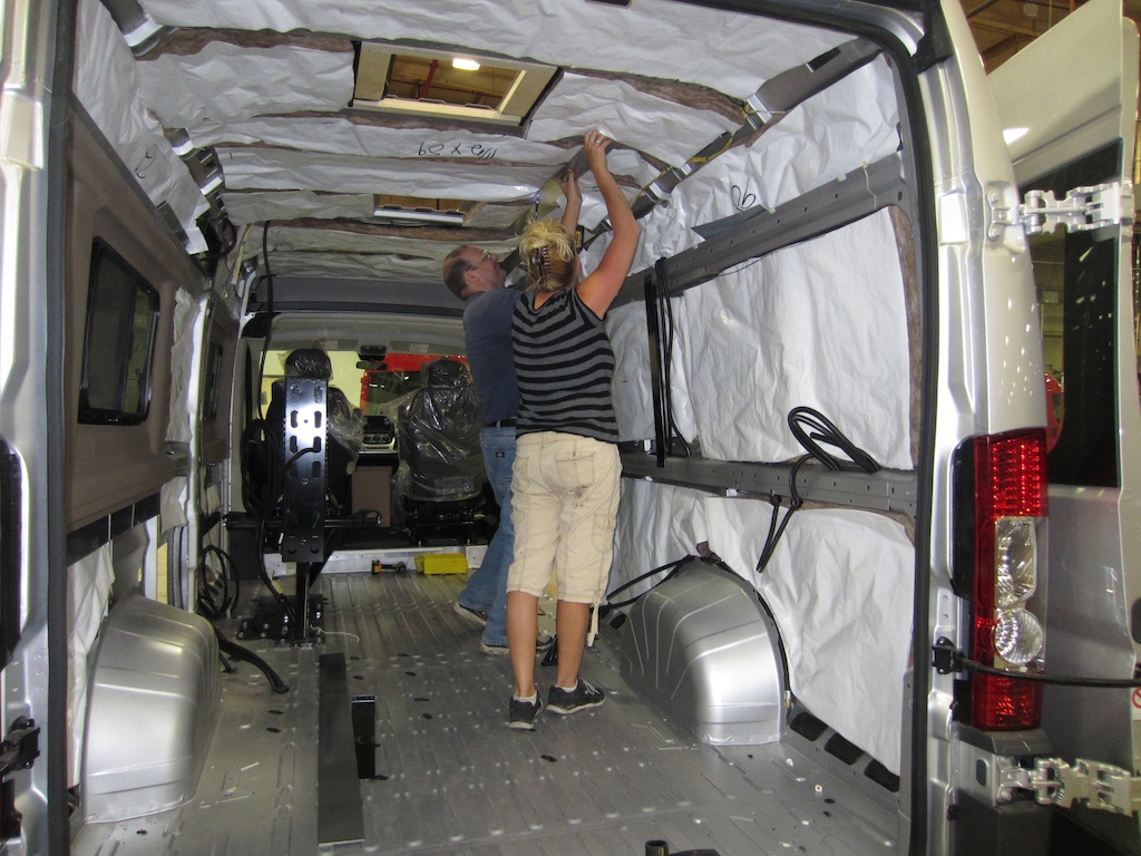 As product manager Russ Garfin walks me over to the assembly area my first thought is, "where are the robots?" There are about a dozen vans arranged in a U-shaped formation with a virgin unit on one side of the U and a completed Travato at the other. At each evolutional stage two or three assembly technicians are deeply focused on their various assigned tasks.