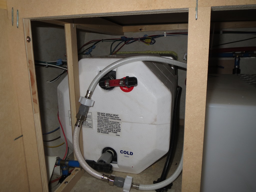 At first, a tank in a tankless water heater might seem like a contradiction. But it actually makes perfect sense, and addresses the biggest complaint I've heard about tankless water heaters in an RV -- uneven water temperature. Here's how it does that: