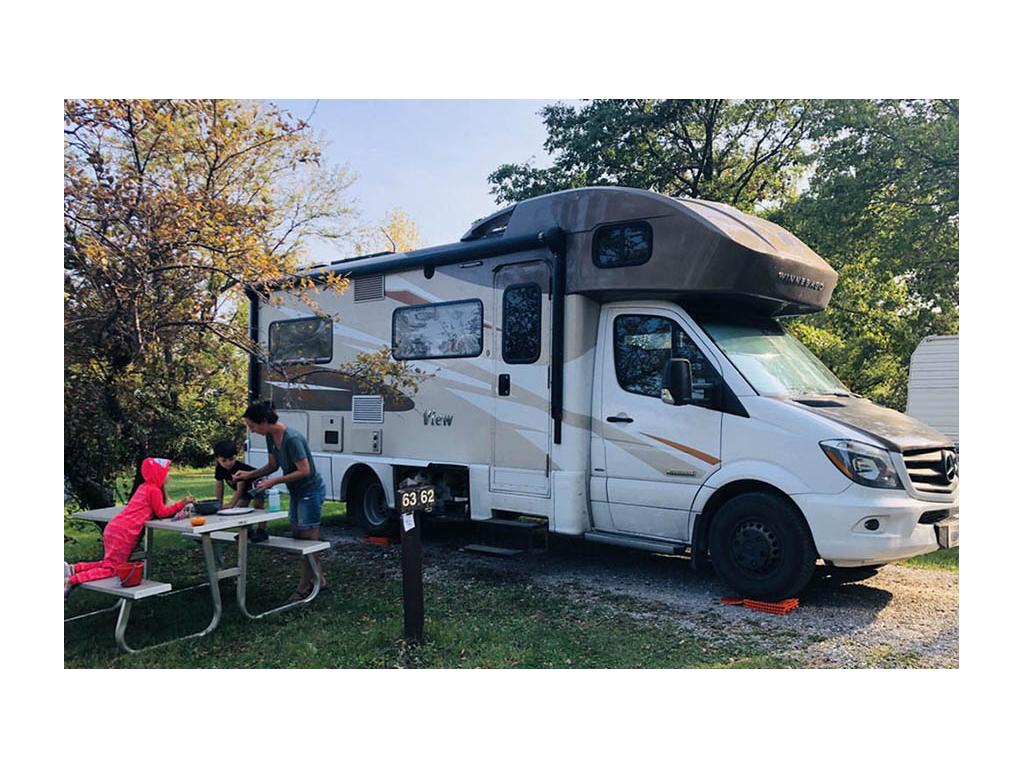 Let’s start with some toy talk. Because I don’t have the time (or extra water) to constantly be cleaning toys, my son Caspian has a collection of toys that are specifically for outdoor use. They live in a bay below our Winnebago View, and he can access them himself once we help open the door.