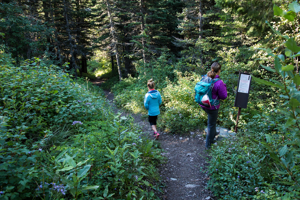 We redoubled our efforts to make noise and exited the area with as much calm as we could muster. We continued to frantically scan our surroundings for any sign of trouble. Within minutes I noticed a large silhouette moving slowly through the woods off in the distance. My heart leaped out of my chest and my adrenaline surged in preparation for battle. I alerted Peter and Abby to the peril that awaited us. Peter doubled over in laughter as Abby triumphantly announced that my bear was in fact two hikers on an adjacent trail. Slightly embarrassed and incredibly relived, I waded through the last of the dense undergrowth and stepped onto the well worn path leading the St. Mary's Falls, comforted once again by the blanket of safety in numbers.
