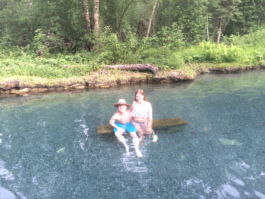 #1. Warm up in Liard hot springs. This hot springs you'll find tucked away by Muncho Lake in British Columbia on the drive up to Alaska. These hot springs didn't have as much hype as Chena Hot springs, which are located outside of Fairbanks, however after visiting both of them we would absolutely recommend Liard Hot Springs. These springs are much more secluded from the road and while there is a bathroom facility, stairs, and benches nearby, you feel like you are really in nature. (The multiple "watch for bears" signs help too). Chena Hot springs was nice, but a lot more crowded as it's a resort as well.