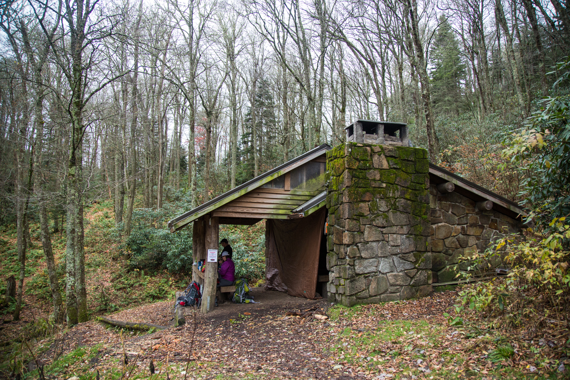 As the hours ticked by, so did the miles and the vertical gain, eventually depositing us on the Appalachian Trail (AT) - the apex of the park, a legend among hikers, and the natural border between North Carolina and Tennessee. One of the more interesting features of the AT are the shelters that occur at regular intervals along the entire 2,200 mile length of the trail that spans from Georgia to Maine. The thrill of our inaugural step onto this iconic thoroughfare, reinvigorated us for our final mile-long push to the Cosby Knob shelter, our home for the night. We weren't really sure exactly what to expect as we approached the shelter, but were pleasantly surprised as we caught our first glimpse through the trees. It was a three sided stone structure with a roof that extended to create a large porch on the front - a true luxury in the back country. As we walked around the shelter, we were welcomed by two other hikers with whom we were cohabiting for the night. They had already staked out the top bunk, so we unloaded our packs and laid our claim to the bottom bunk that ran the entire twenty foot span of the shelter.