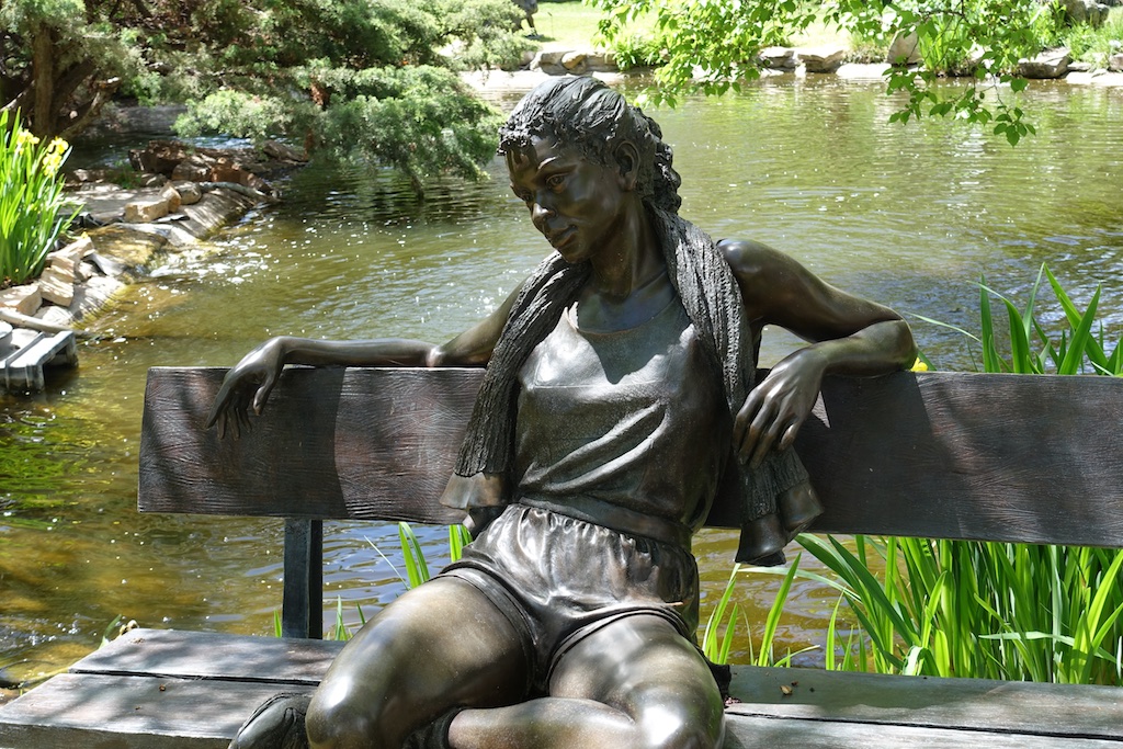 Sculptor George Lundeen's "Nike Girl" in the Nedra Matteucci Galleries garden.