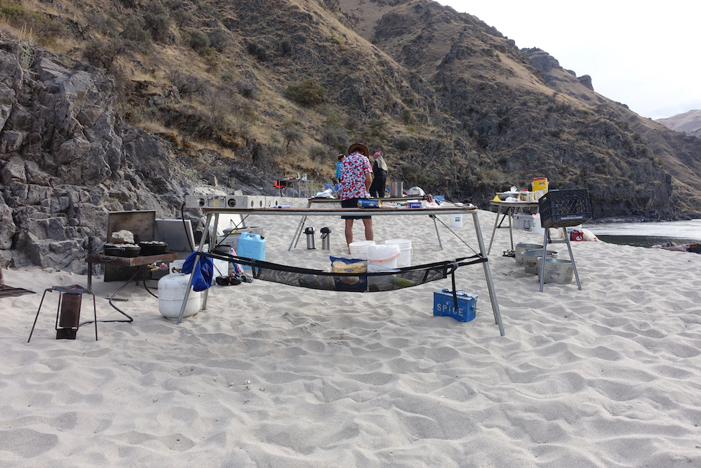We could have called it good for a lunch snack right there as we boarded the rafts, but just a little further down river we stopped again and the first of our amazing meals was assembled on specially made long tables that fold and fit as seats for the supply rafts. Atop was a monster spread of artfully plated sandwich meats, pickles, condiments and fruit slices galore. A cooler with beer and soda offered everything from a PBR to diet Coke. And for all the sophistication of multigrain breads and wasabi infused mustard, there was the school lunchbox comfort of Oreo cookies at the end.