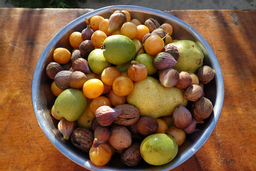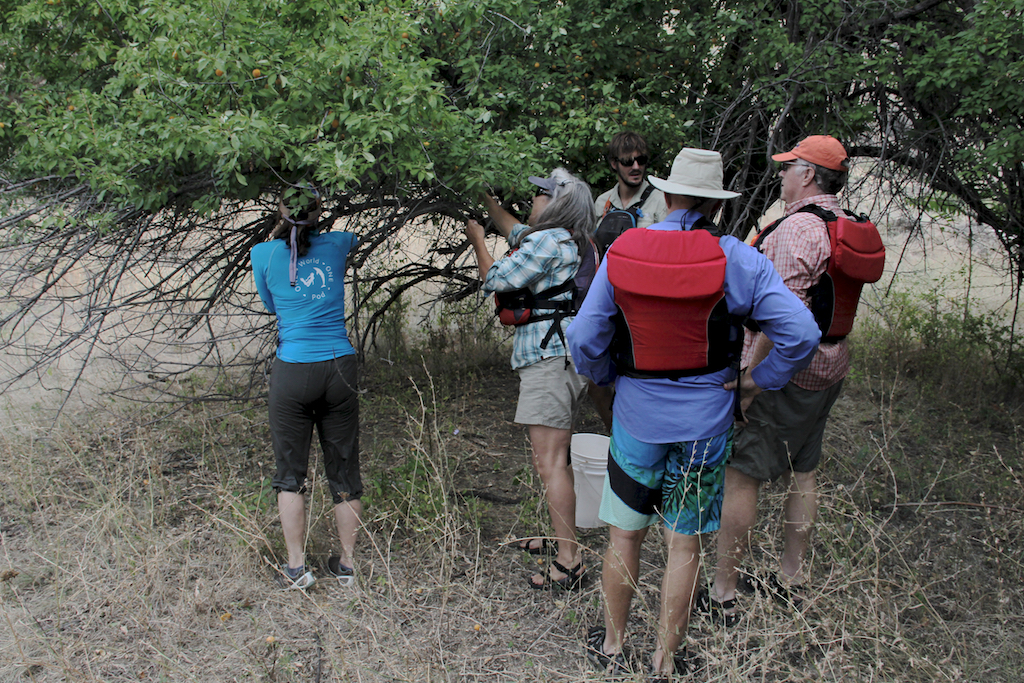 After a couple hours on our first day Jonah guided the boat to the north bank of the river where we walked up to an old abandoned orchard. It was there that our crew of urban dwellers fell into harvest mode. Ripe succulent blackberries, sugary golden plums, crisp sweet pears, newly ripened figs, and manly hand crushed walnuts. What a haul.
