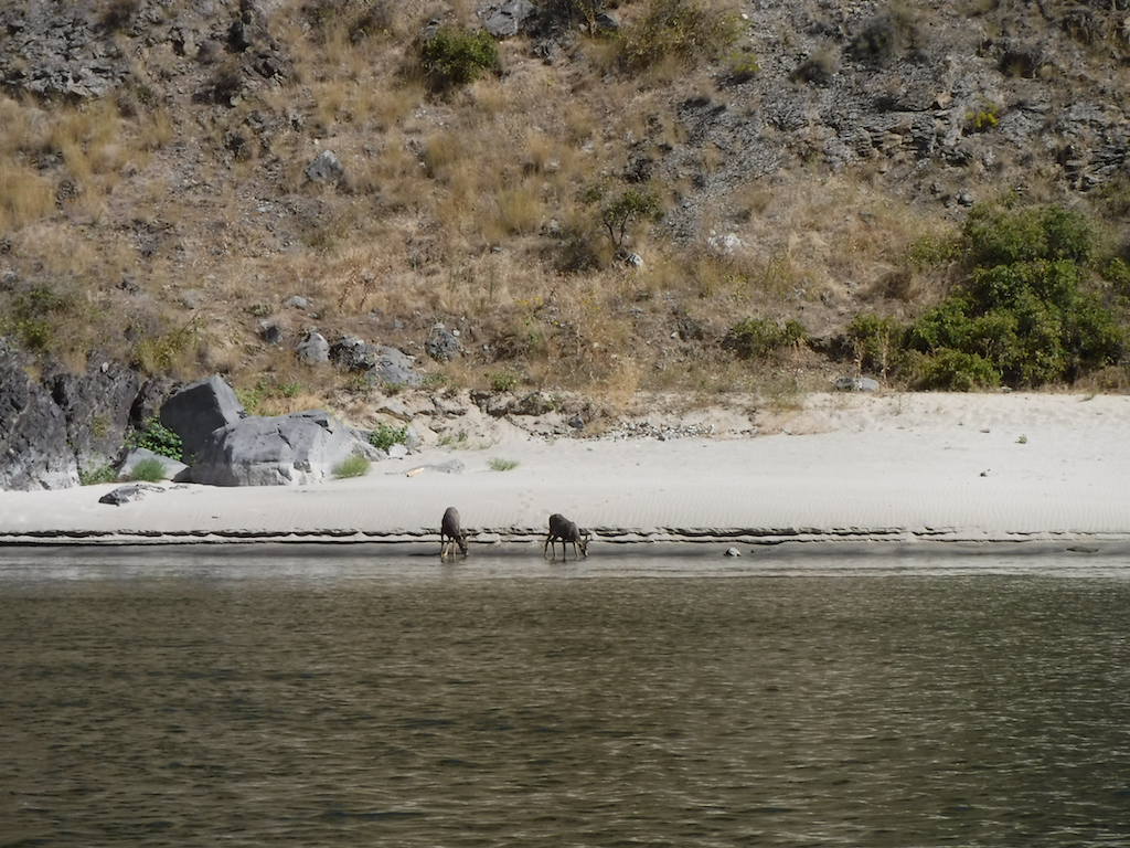 A couple of bucks drop by at cocktail time. Earlier a golden eagle spiraled up above us during lunch.