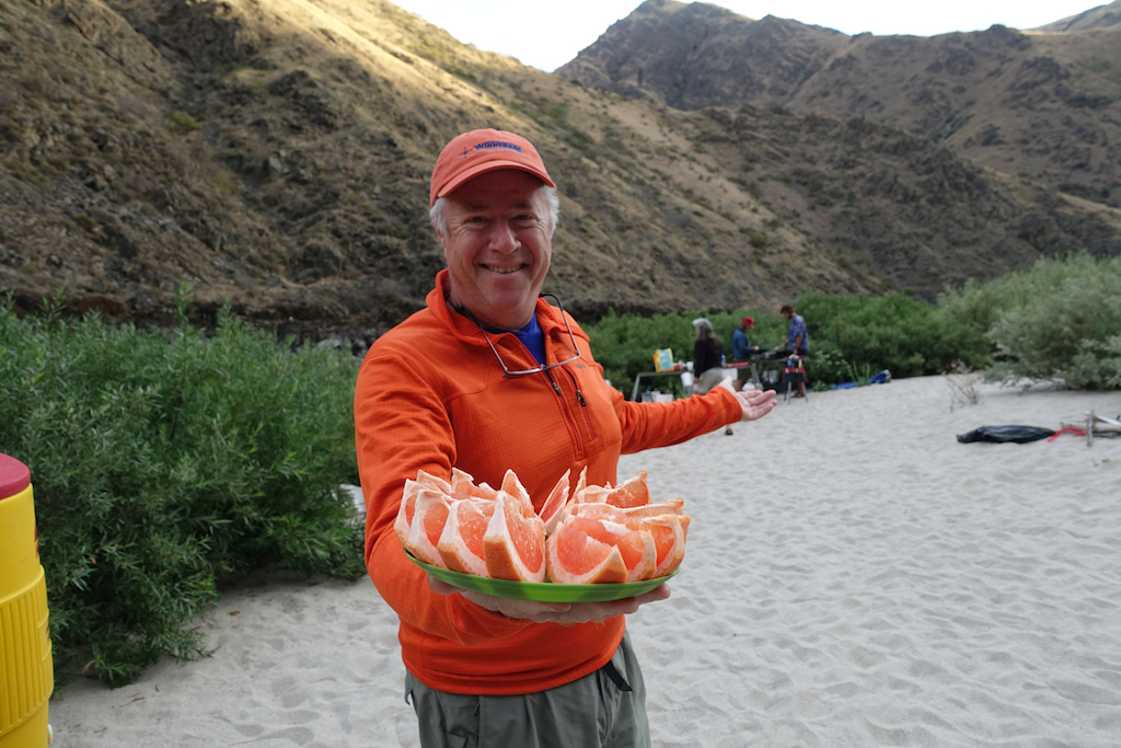 What we learned was that our trip leader, Jonah, was the son of ROW's founders Peter Grubb and Betsy Bowen. Yes, that Betsy, the co-owner, who had stood pleasantly in the background the evening before. We also learned that Jonas grew up in Steamboat Springs, Colorado, is a die-hard Broncos fan, and both a skilled chef and river guide in his own right.