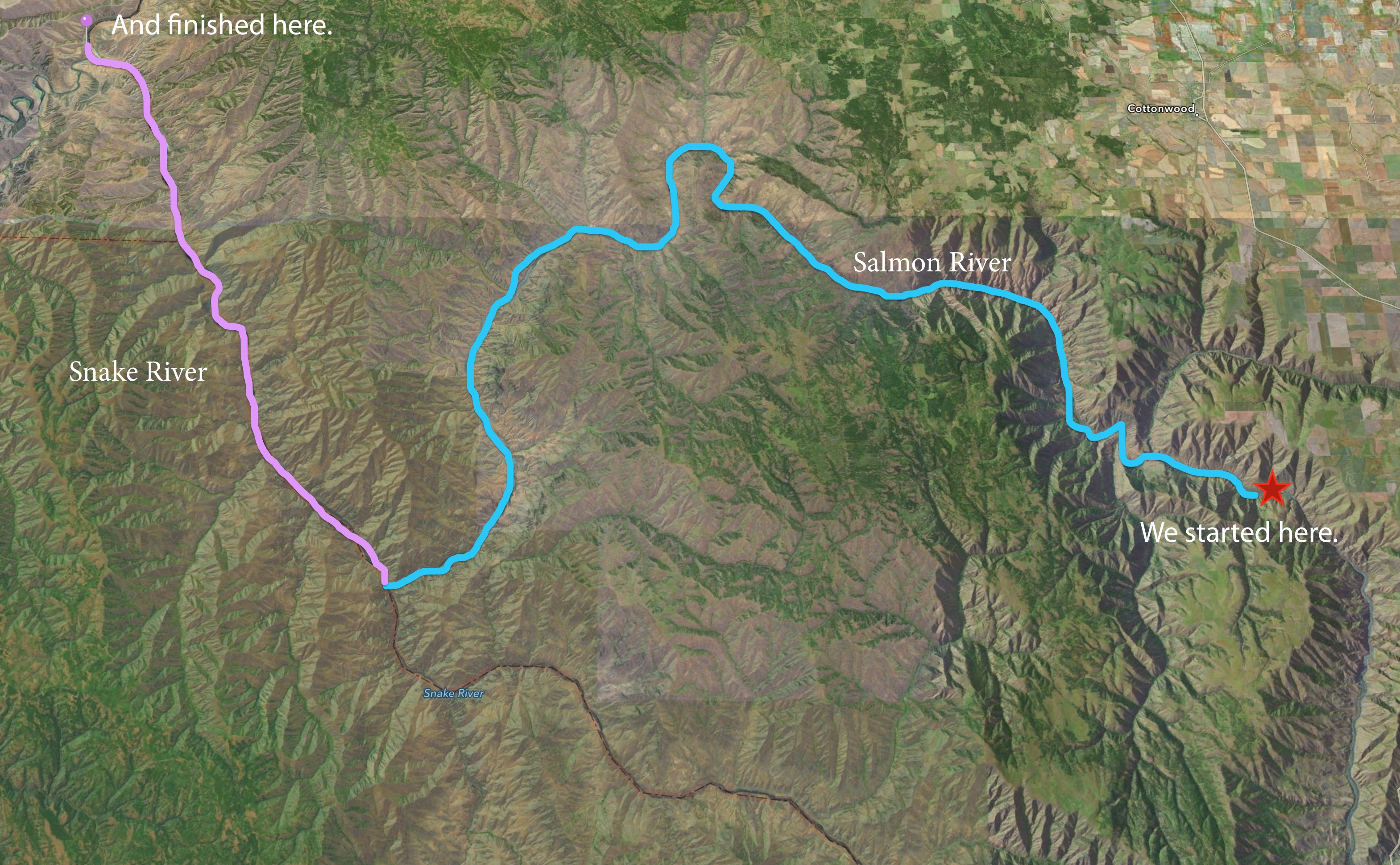 Our own one-way itinerary would float nearly fifty miles of river ultimately merging into the much larger Snake River. That would mean three nights of camping, multiple rapids to negotiate, and a few fascinating diversions. And though all three couples had some river and camping experience, we wanted to go with an experienced river company. Our group's organizer, David, did the requisite due diligence to identify and arrange a private trip for us with ROW Adventures.