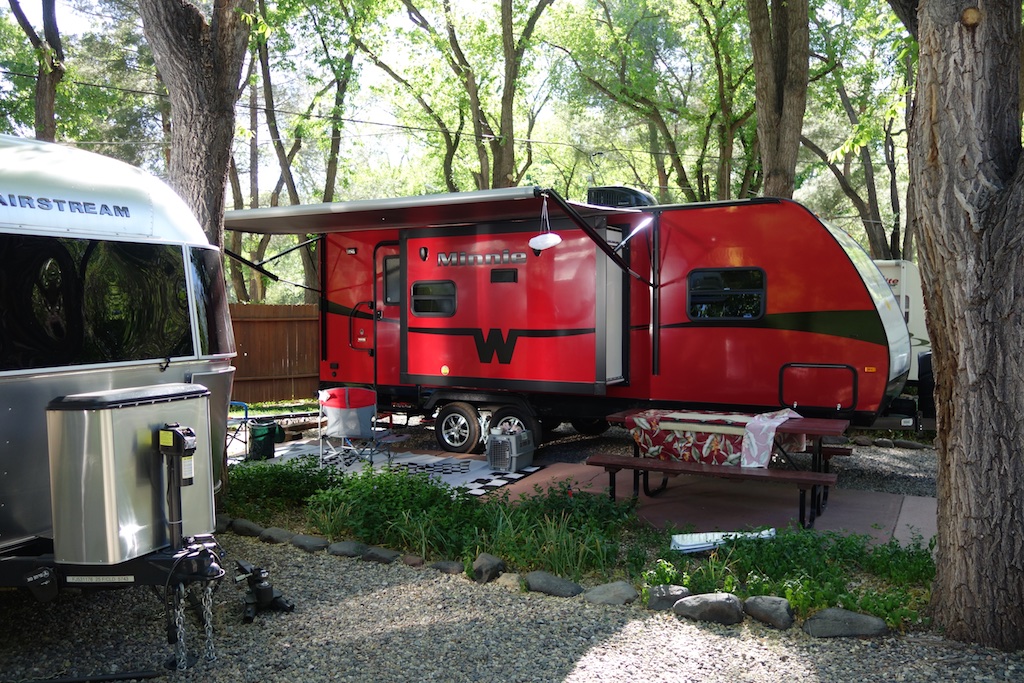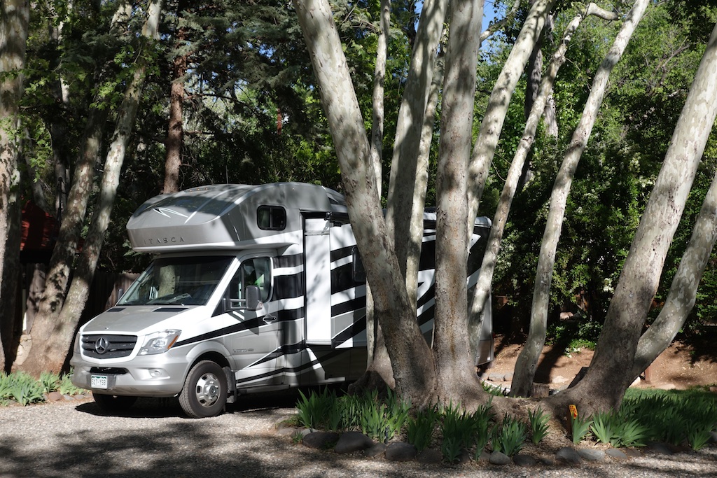 The Rancho Sedona RV Park is the only one in (or near) town. It's well maintained and nestled in a beautiful grove of sycamores and cottonwoods. Under the leafy canopy, satellite service can't happen, but the park does offer cable hookups, and wifi. We didn't test the park wifi as our AT&T rocked with a strong 4G LTE signal.
