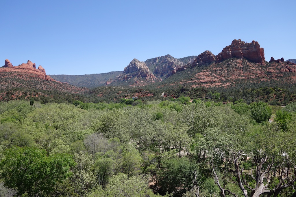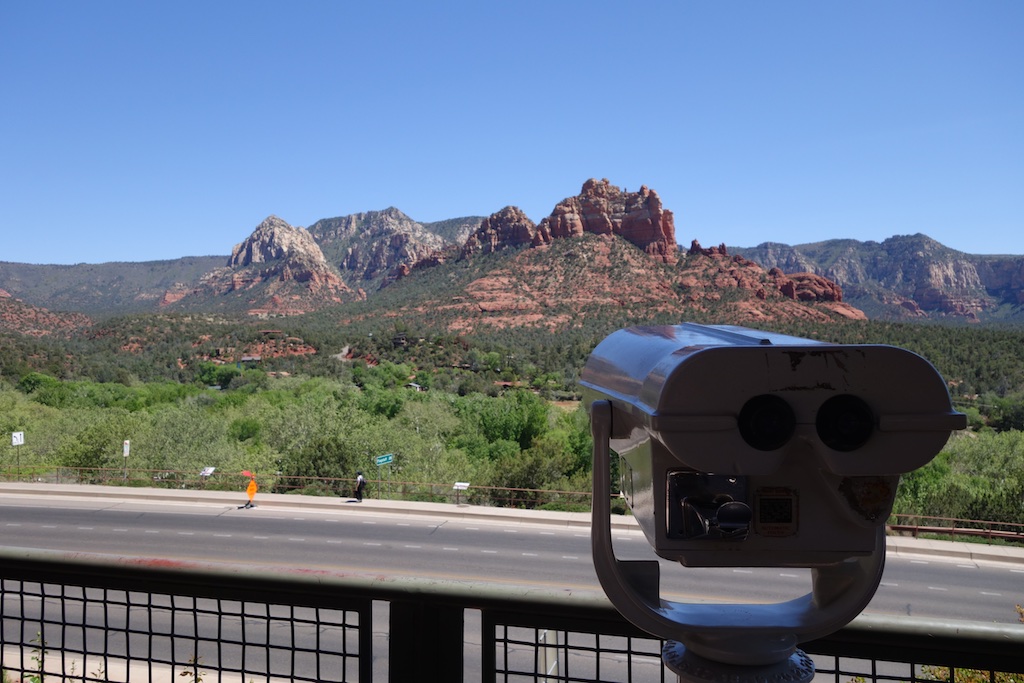 BIG RIG TRAVEL TIP: If you're driving a big rig over 40' in length (and especially if you're towing a car or toy trailer), I'd recommend coming up from the south via I-17 and AZ 179. If you come south from Flagstaff on AZ 89A you'll see signs warning that vehicles over 50' are not allowed. There are some very tight hairpins, some steep grades, and narrow stretches of pavement without any shoulders. I was happy to be in our Navion pulling our Fit, which was cake. But, being ever mindful of our big rig friends, I could see plenty of potential for a white knuckled drive with something wider and longer.