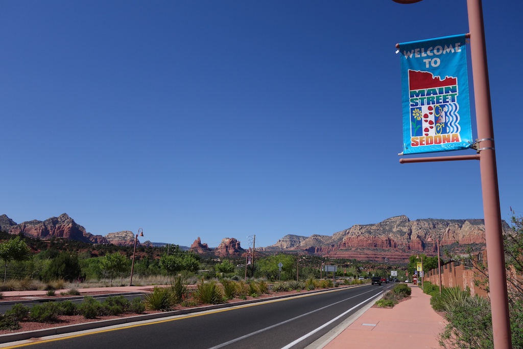 No kidding, it's less than a ten minute walk down a slight hill to the main roundabout where state highways 179 and 89A converge. A right takes you up the hill to shopping, restaurants and hotels, and a left takes you to shopping, restaurants and motels.