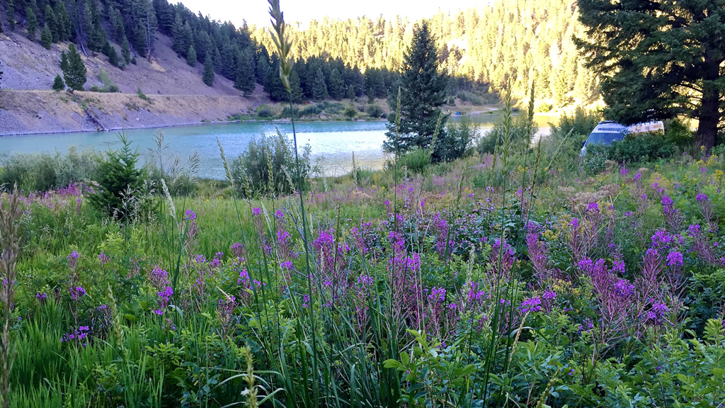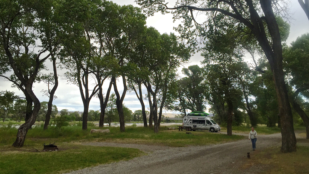 In Ennis we stopped into Trout Stalkers fly shop to pick up some local flies, and with pints flowing next door and the smell of irresistible burgers, we ended up staying for dinner on the dog-friendly deck next door at the Gravel Bar. After our fill on the Gravel Bar, we were off to our home for the evening, another BLM campground, this time on the banks of the Madison River.