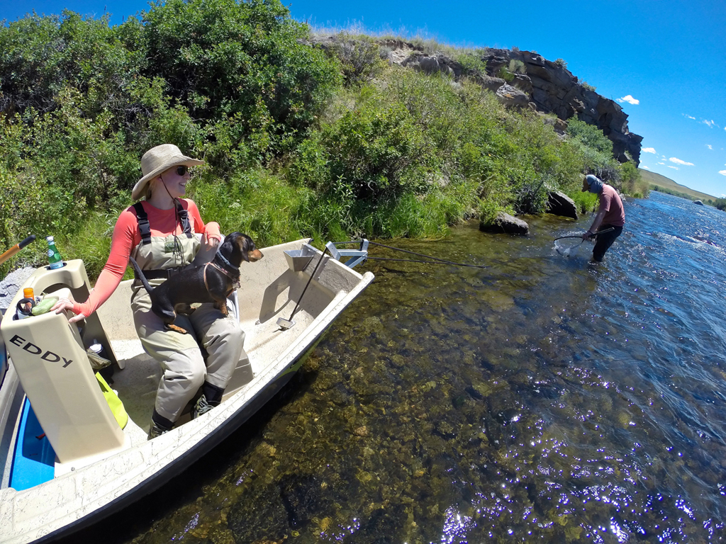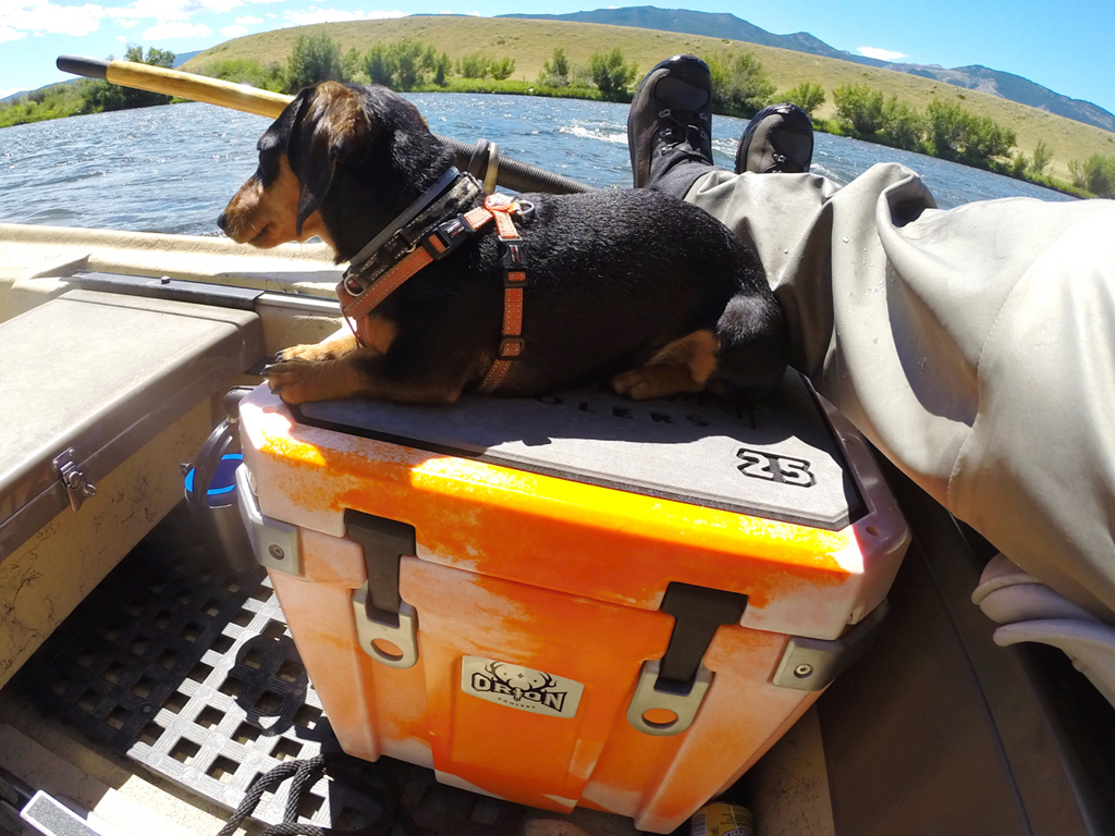 My friend Corey met us on a cold morning with his drift boat for our Madison float. Ashley was excited for her first river trip in a drift boat, and Tripper was excited, to, well, do anything with us and be in a boat. We packed our lunches from the Travato in the Orion 25, loaded the boat and headed down the river.