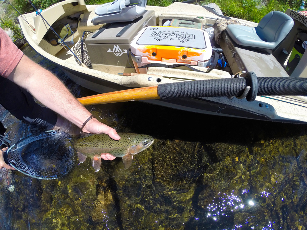 The campgrounds at Cliff and Wade Lakes are primitive, but an incredible scene. Wildflowers blooming, crystal clear water with trout swimming around, and plenty of paddling opportunities. We wished we had more time to spend there. For now, waders were hung to dry, and it was time to crawl back in the sleeping bags.....