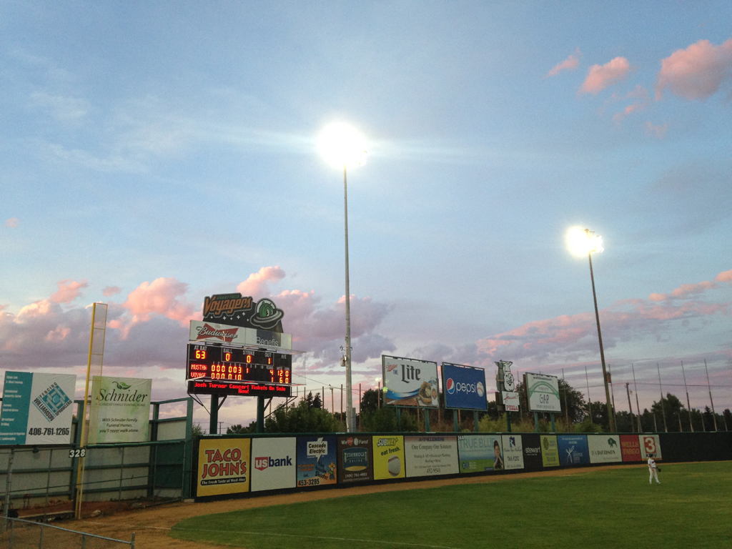 Is it a bit weird that one fellow's hallucination is the name of the local baseball team 65 years later? You bet. Then again, quirky is what makes the minor league experience so quintessential. So we climbed the steps leading into the 3,200-seat stadium (the ones that shouted, "THAT'S ONE SMALL STEP FOR FANS..."), bought a couple of bratwursts and watched the Voyagers take on the Billings Mustangs.