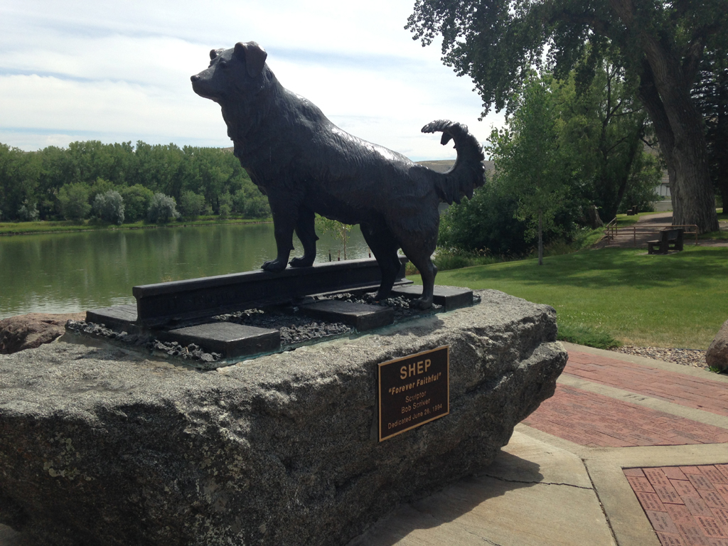 When one of the train conductors figured out the genesis of Shep's devotion, the dog became famous. Rail travelers would detour to Fort Benton just to catch a glimpse of him. He received fan mail, Christmas gifts, and countless offers of adoption. When he died in 1942, slipping on an icy track before an incoming train, his obituary was carried on both wire services. Hundreds attended his funeral. There was an honor guard. There were pallbearers. Of course, nobody quite remembers the name of the sheepherder, but in Benton, Shep is immortalized.